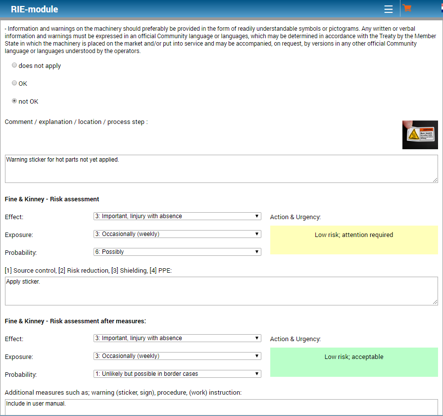 The risk-index has five categories. Based on this risk-index the appropriate (technical) measures can be determined.