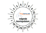 Goedgekeurd materieel moet worden voorzien van een sticker. De sticker is voorzien van 12 maanden en 6 jaartallen. U kunt deze stickers dus de komende 6 jaren gebruiken.